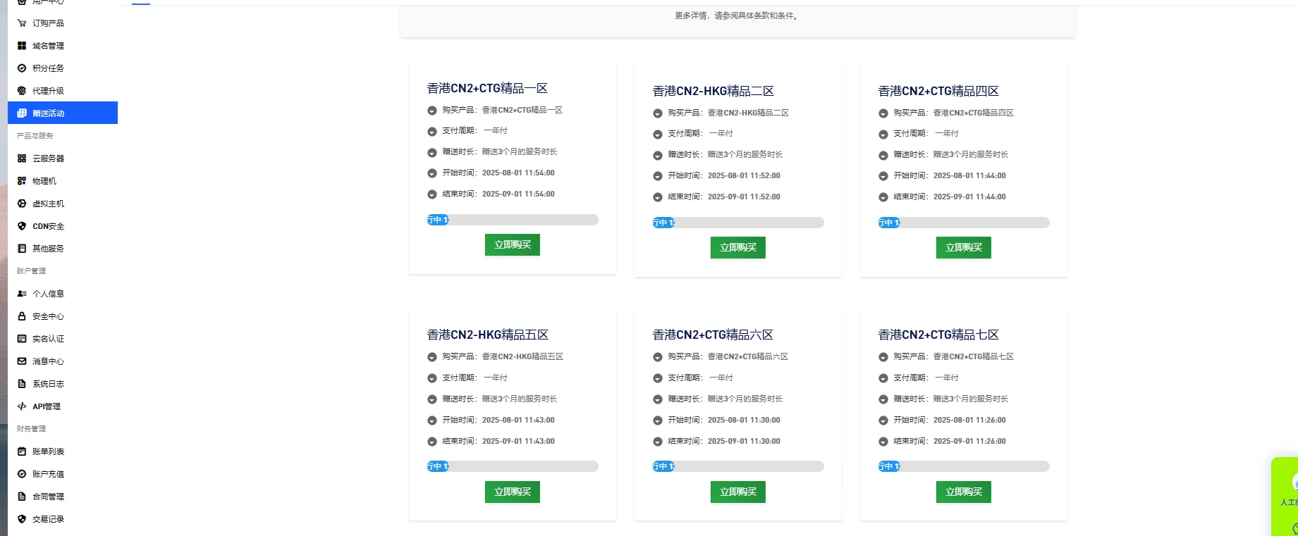 即日起,在慈云数据购买指定香港 CN2 / CTG 精品线路服务器,将自动享受以下双重福利:
