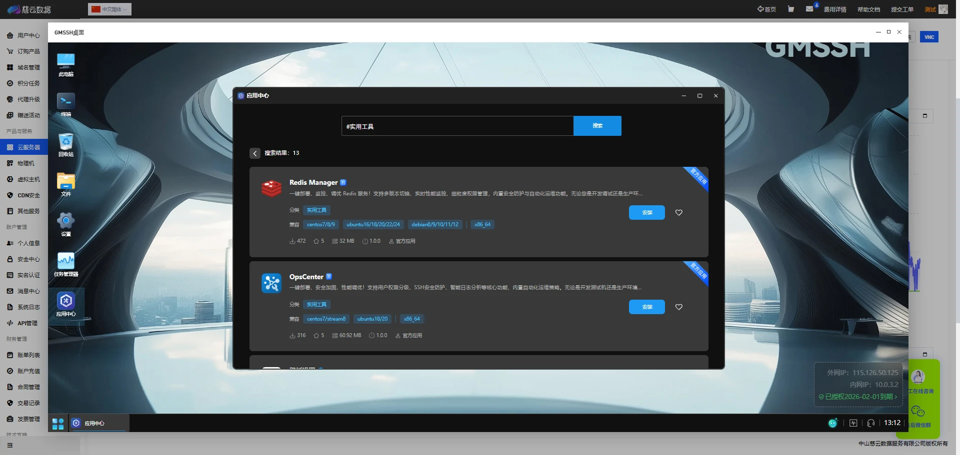 所有在用服务器用户,系统将自动开通 GMSSH 云端远程管理会员 6 个月,支持浏览器远程桌面、图形化文件管理、一键部署环境等功能,操作更简单、效率更高。