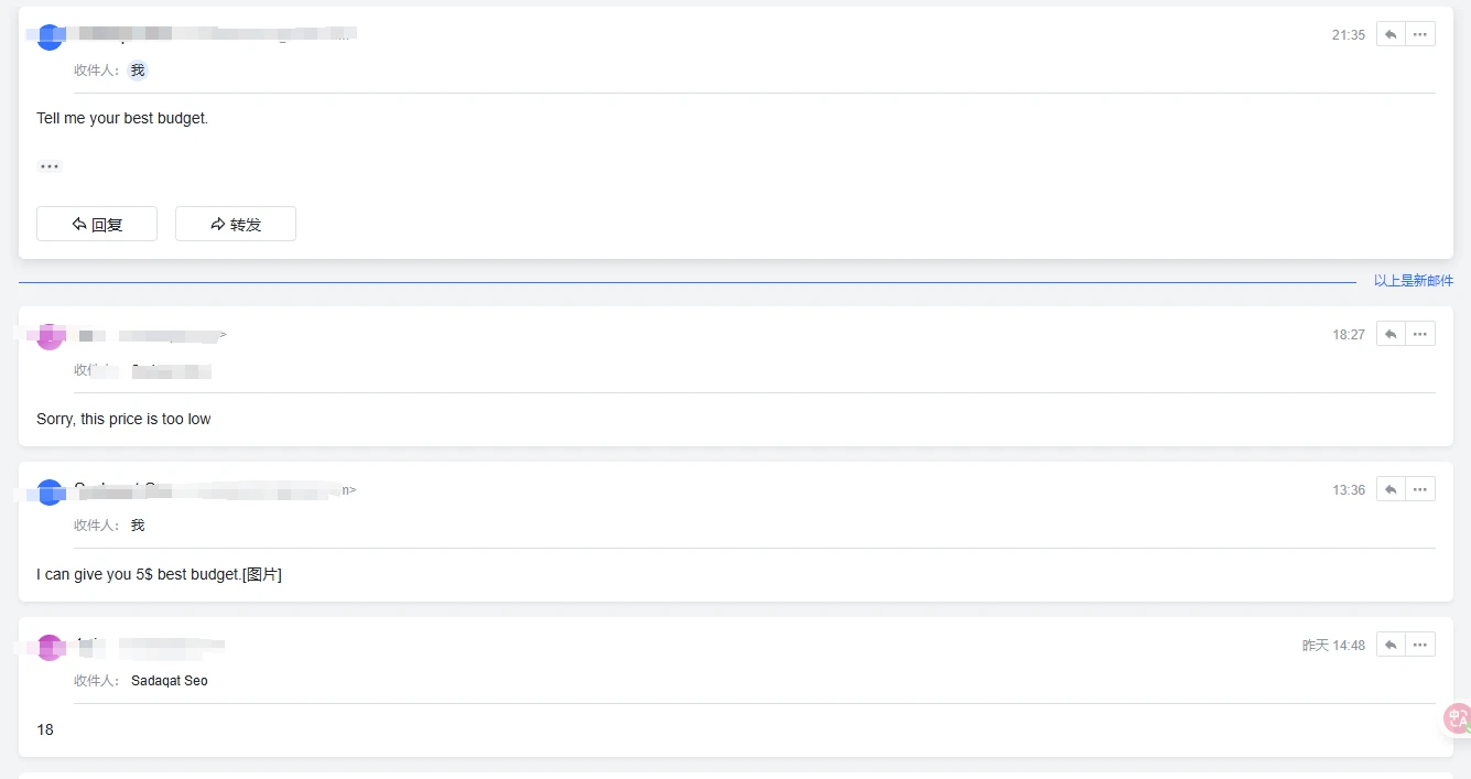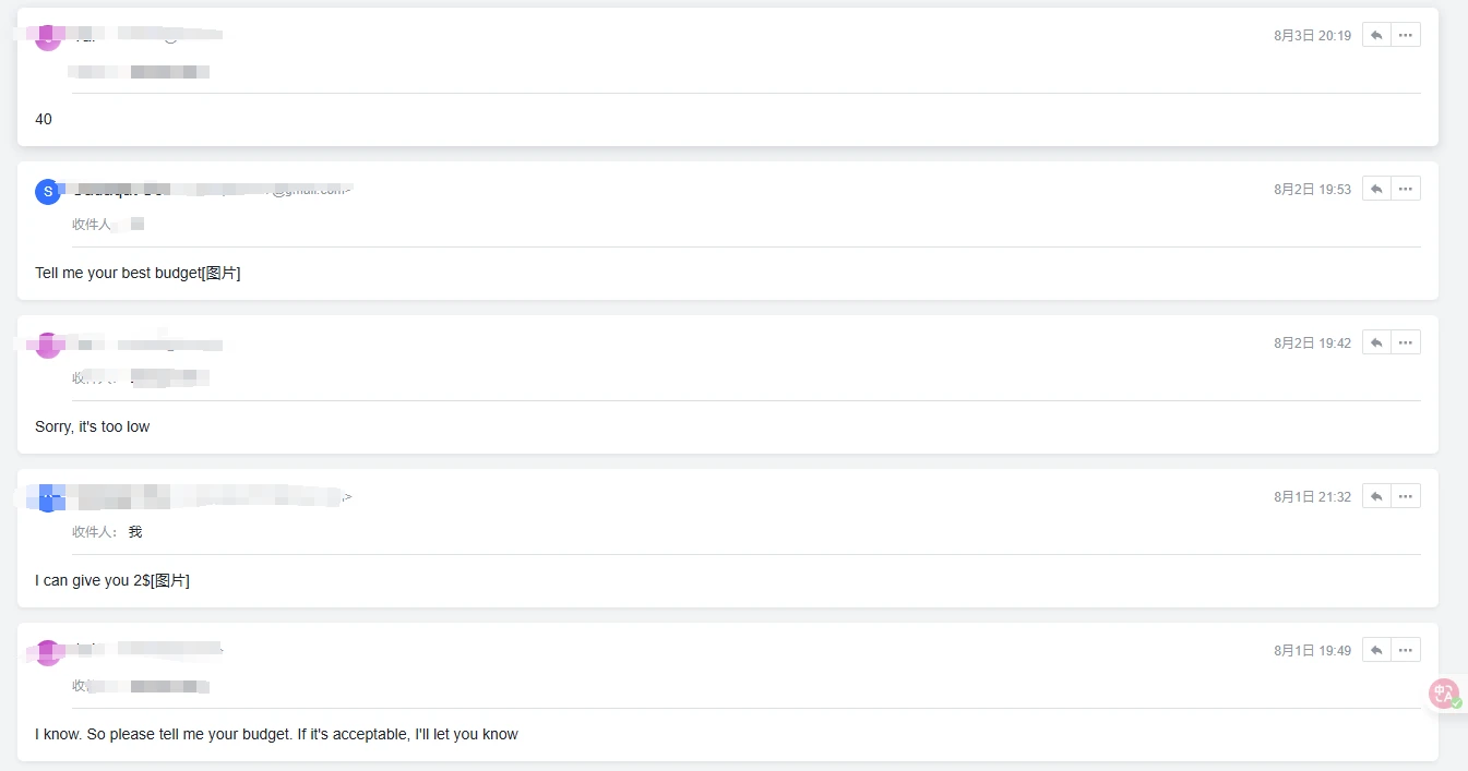 反正就是,老外询价,我报50刀,他出2刀,一路提刀找我砍,砍到我看他量大的份上回了个18刀,他出5刀,我俩谈了一个星期