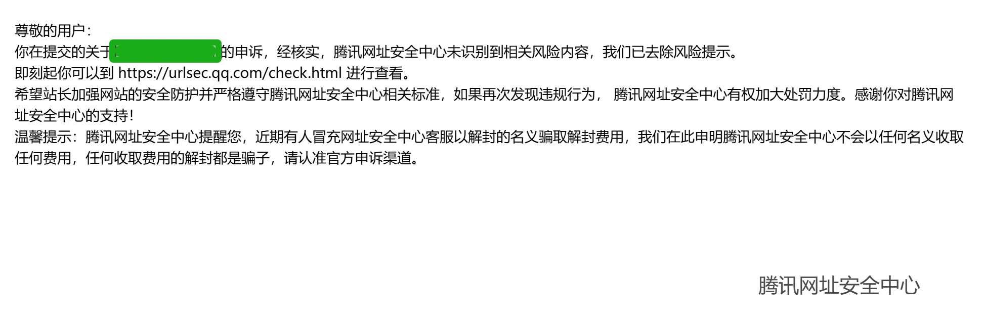 腾讯申诉网站还怪快 了:您的网站申诉申请已处理完成