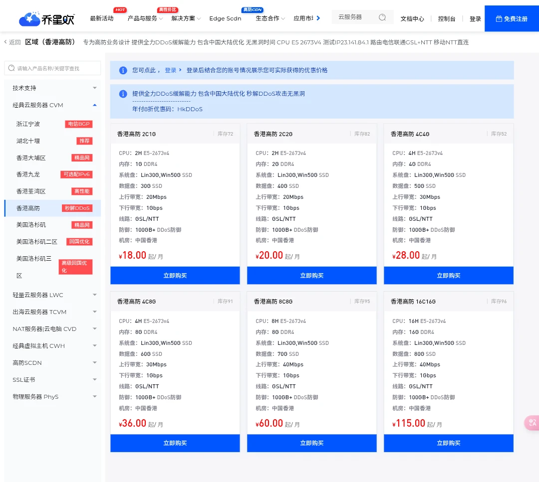 香港高防服务器、100GB+DDoS防御 18/月_144/年,年付8折优惠!