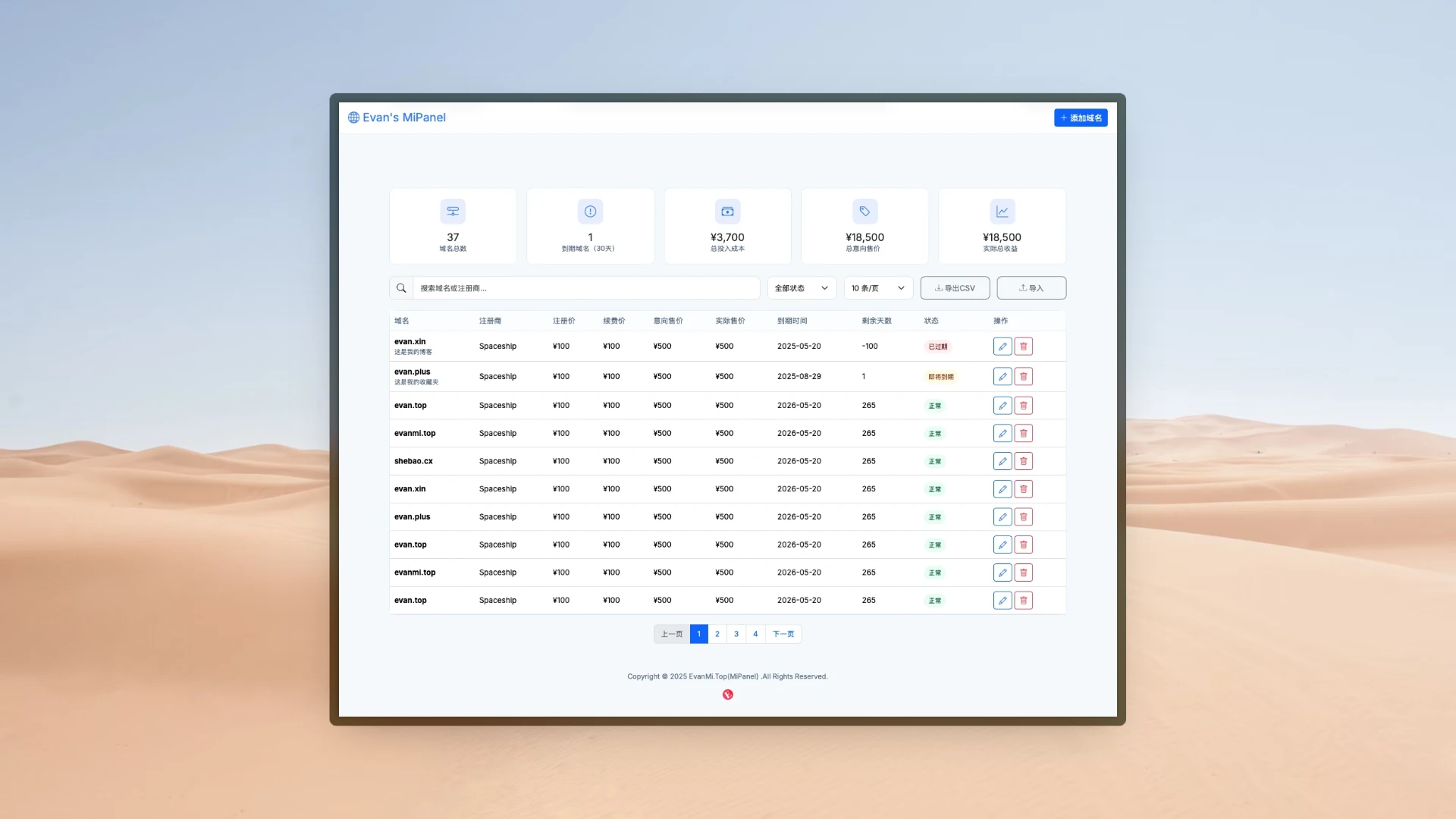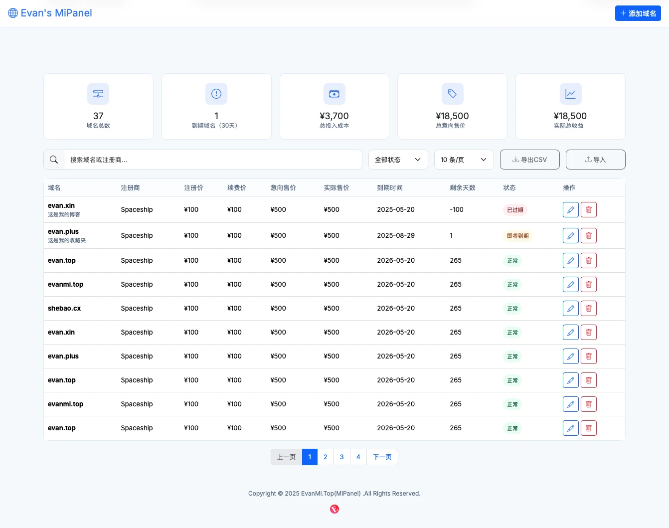 其实还有一些功能妥协了,原本是可以一键添加域名注册时间、到期时间、域名购买费用和续费费用的,主要是想借助WHO.CX大佬的API,但发现还是有些问题就终止了。