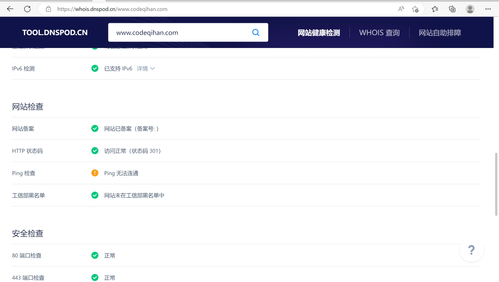 dnspod网站自助检测的一个奇怪的bug