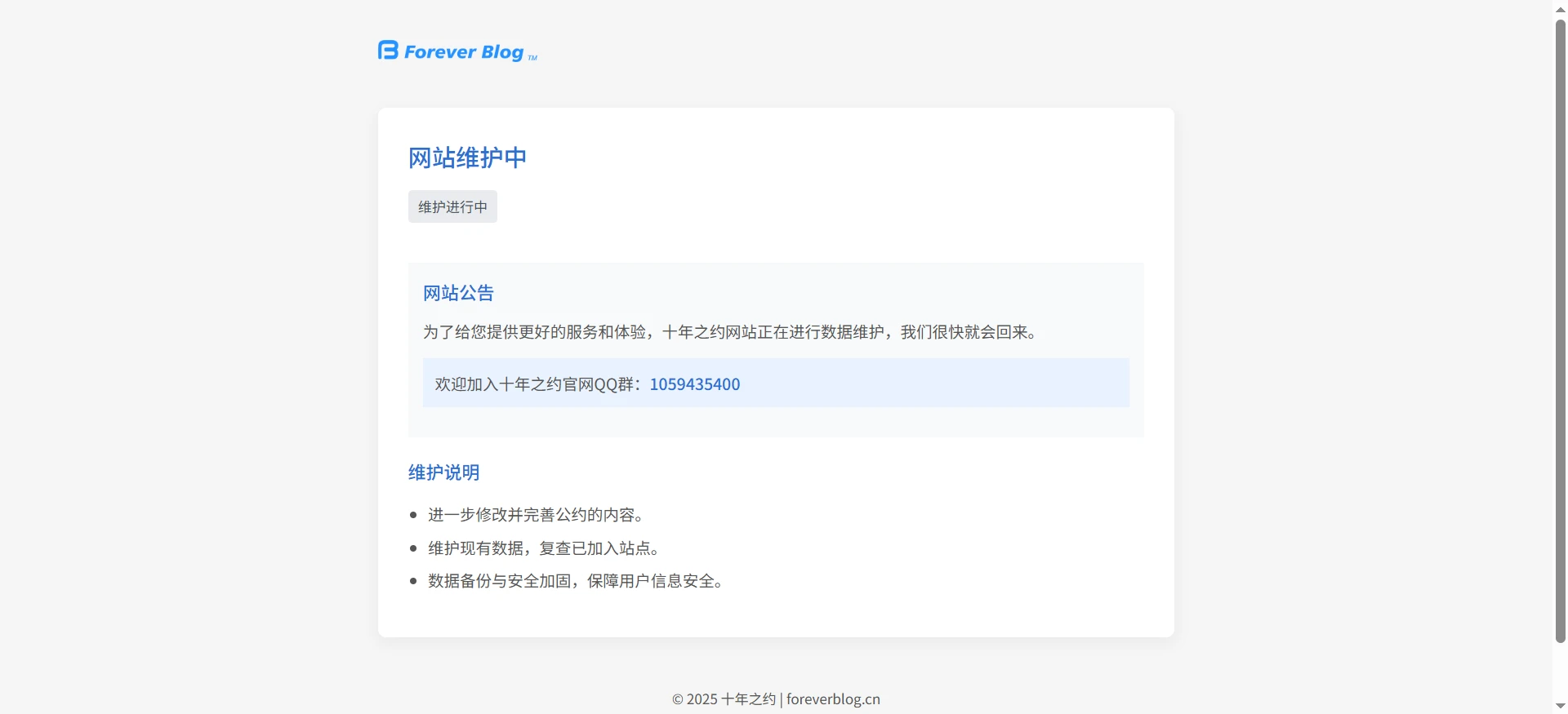 十年之约项目组变更通知: 十年之约(foreverblog.cn)现已交接完成现做出如下说明: