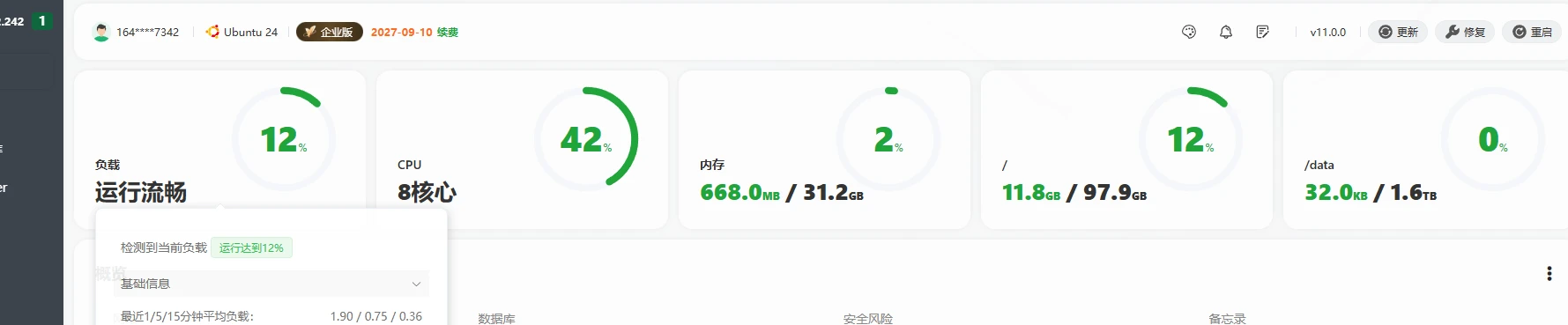 负载 : 0.32, 0.11, 0.03