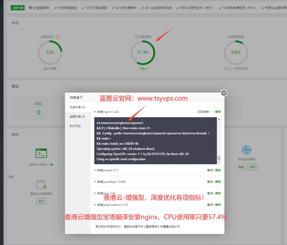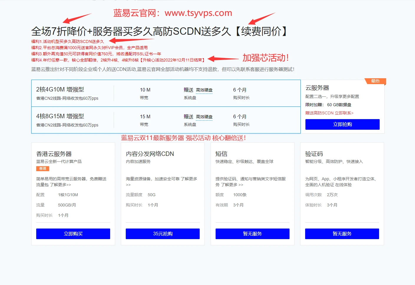 香港云增强型,超越标准型30%性能 深度优化网络!去程联通移动CN2,回程五网-CN2!(可自测)SSL通配符证书双11一年仅需50元!(全场7折)蓝易云双11最后一波,强芯活动!(服务器核心翻倍)