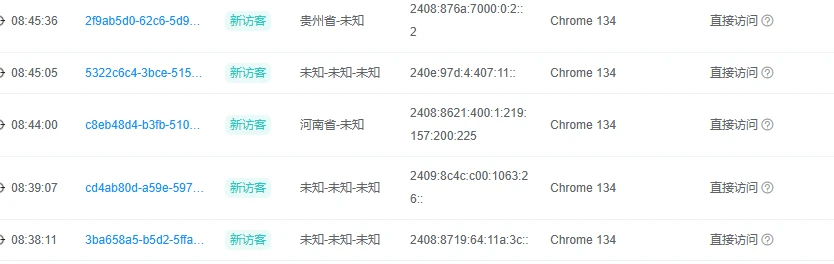 一小时 几千个来路 浏览器都是谷歌的 但是ip都是国内和未知,每天都有一个小时几千个访问,肯定不是正常的。