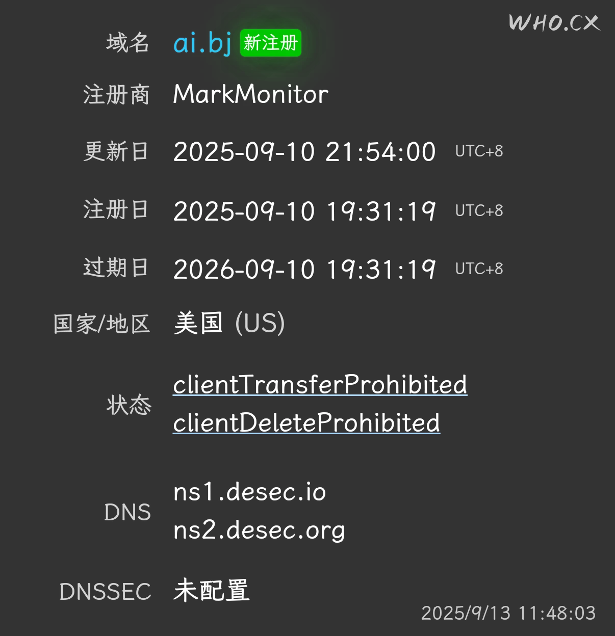 bj不是要求3字符的嘛,为啥ai.bj能被注册呢?注册商居然还是MarkMonitor,这是直接去贝宁注册局买了吗?