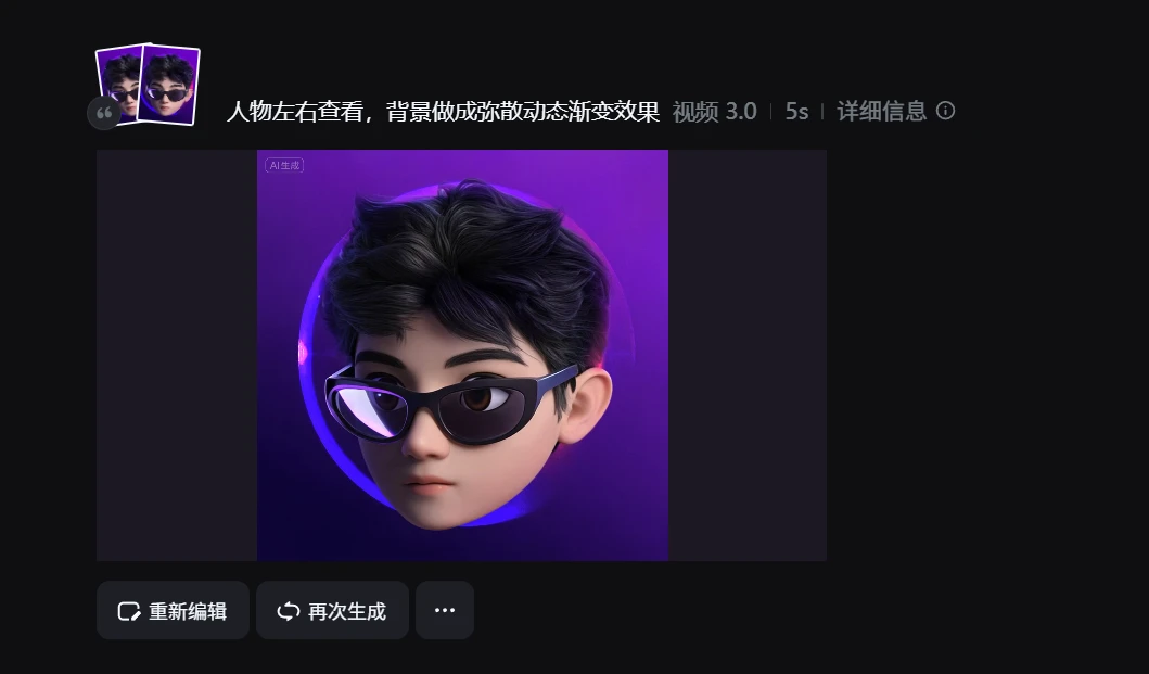 ②打开姓即梦jimeng.jianying.com—选择视频生成—上传生成的图片设置首尾帧(我的首尾帧是同一张这样能保证人物摇头动作)—输入提示词—一句话让他左右摇头看,他就可以生成灯光,画面一致的动作。