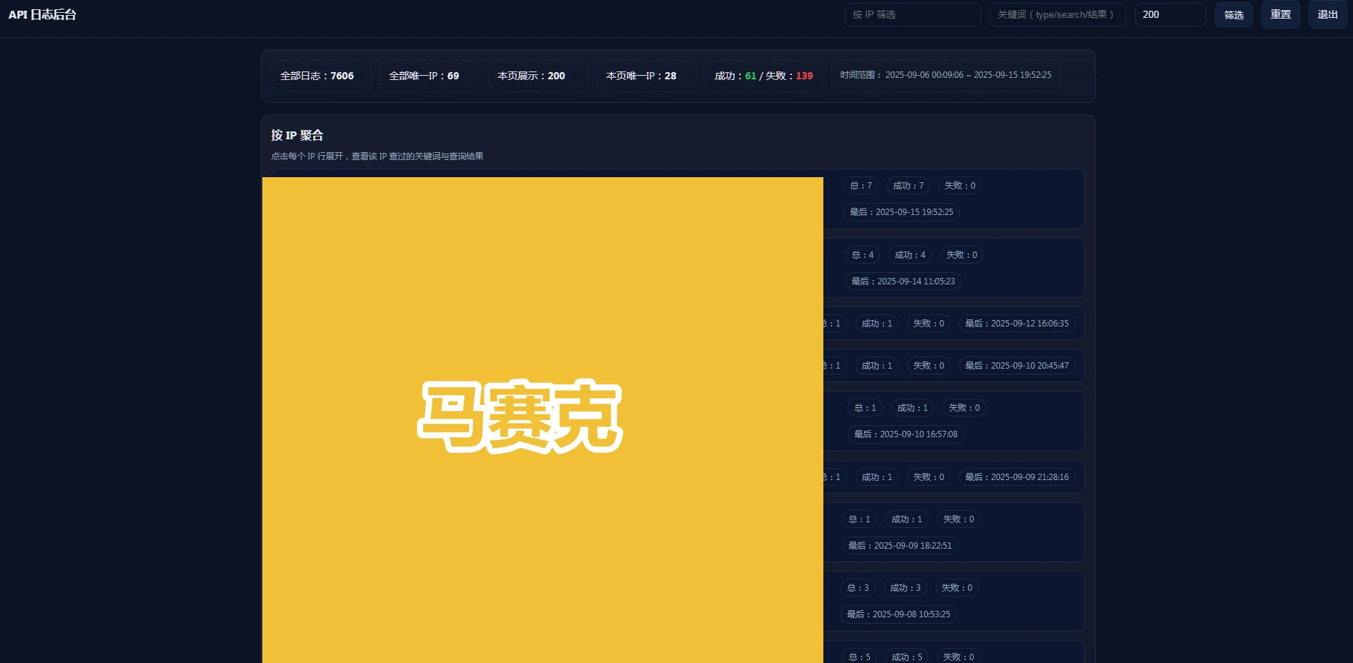 默认后台日志地址 /apilogs.php 默认密码admin6688