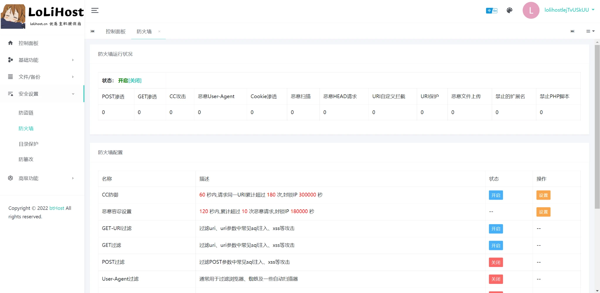 lolihost 新增防火墙功能
