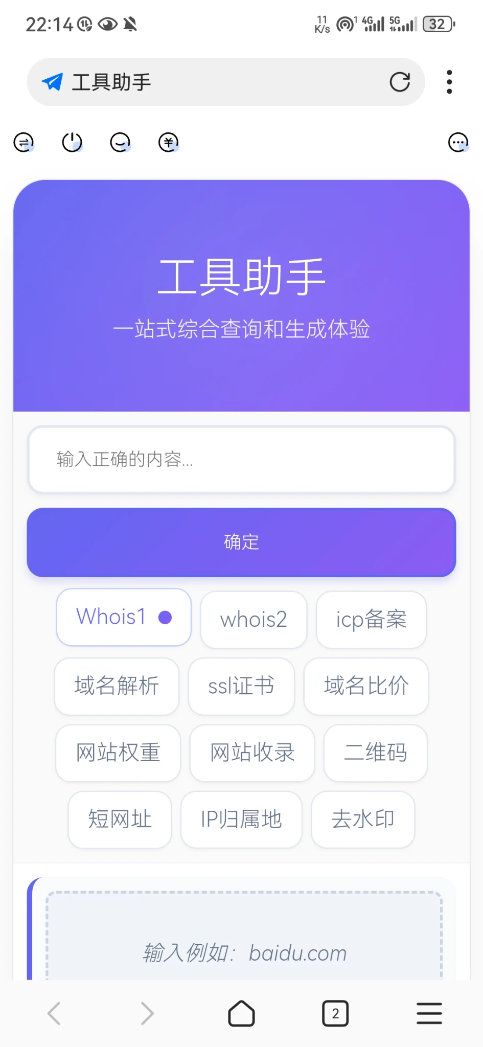 重要的是whois2查询,支持所有主流和非主流域名,基本上没有查不到的。你就是强不强吧。😎