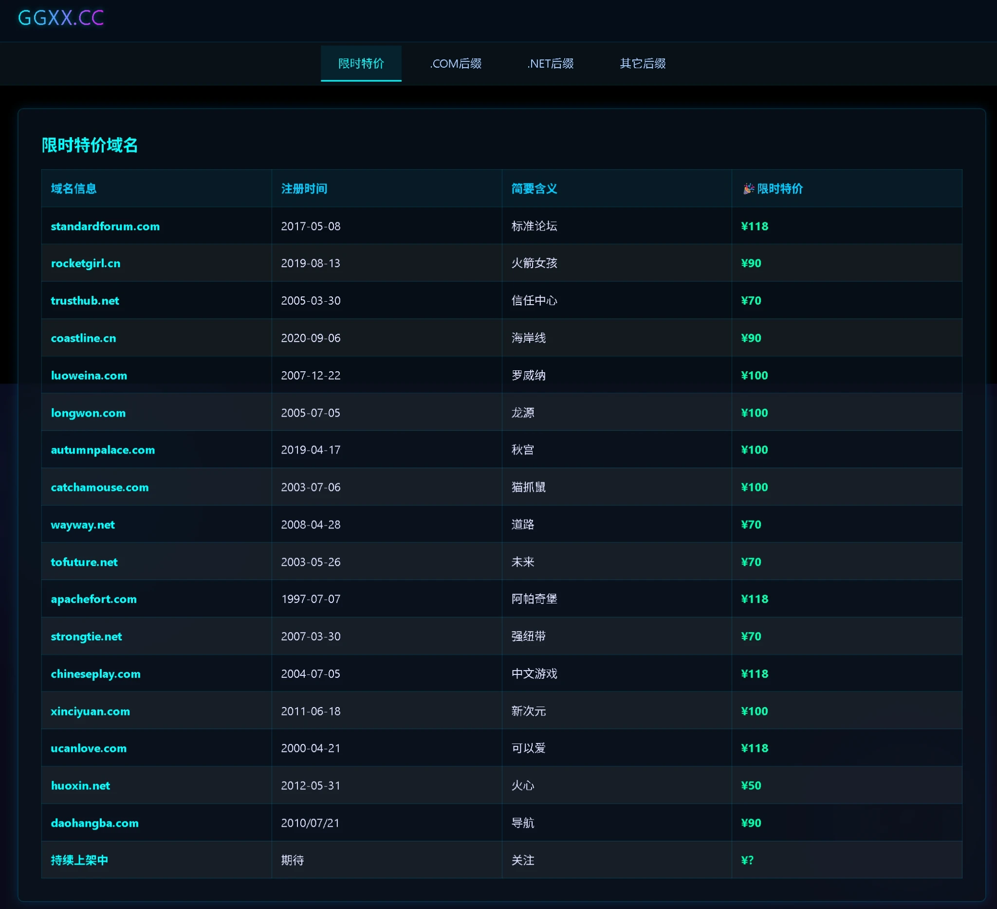 国庆期间,全系域名特价,价格已经在源码里,下载可看,也可见图片。