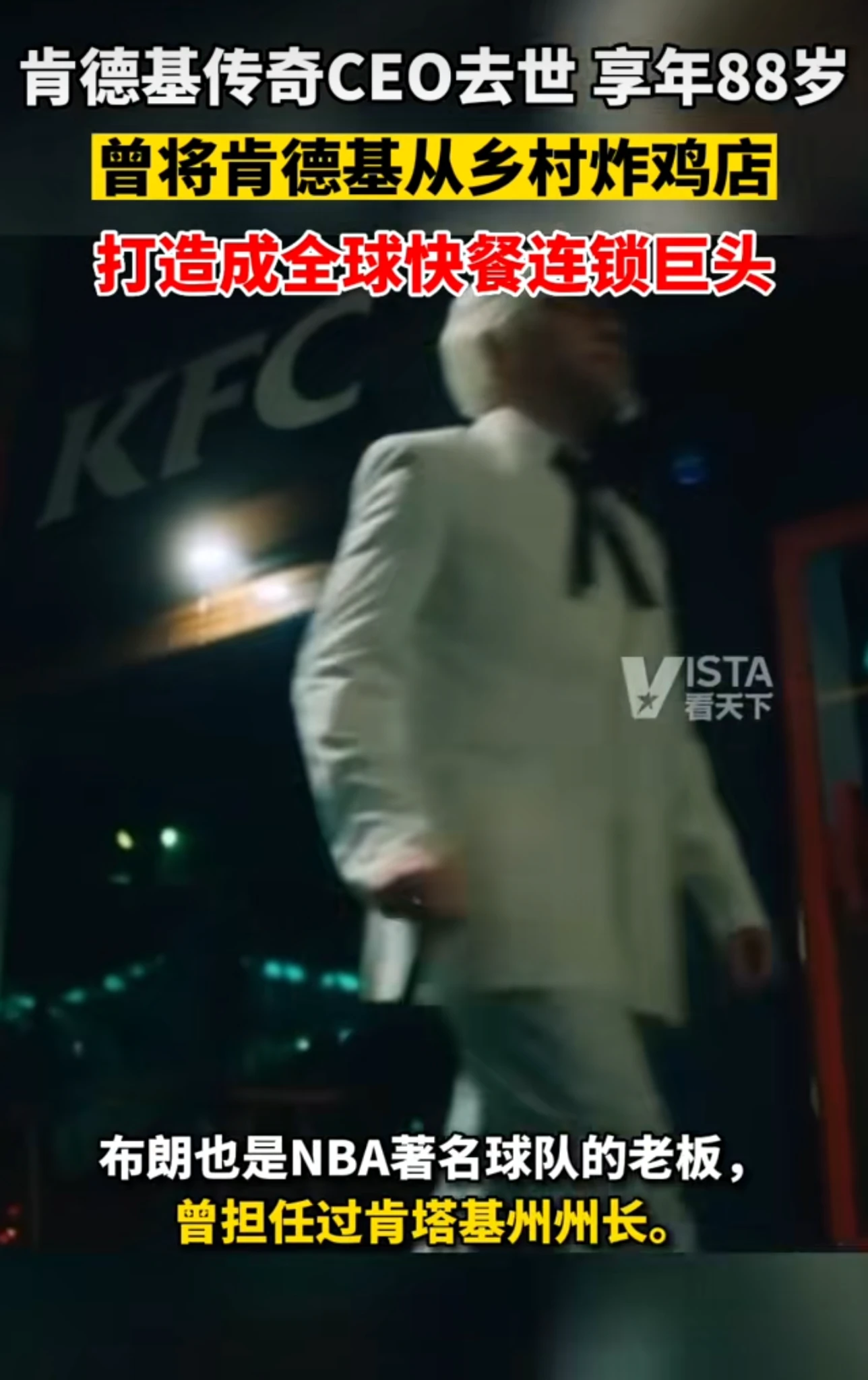 疯狂星期四,肯德基创始人去世