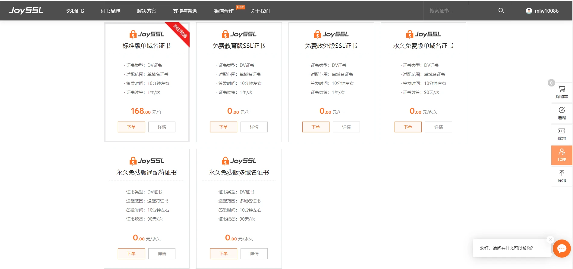 5种免费的证书,单域名多域名通配符,我的网站也在用,就是续签麻烦点,需要去控制台重新弄一下