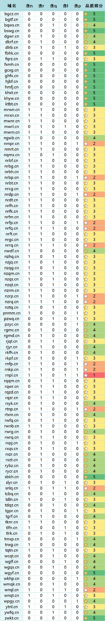 (据说含N/R/Q/L/P的四声不好卖 故而设计了该打分表)