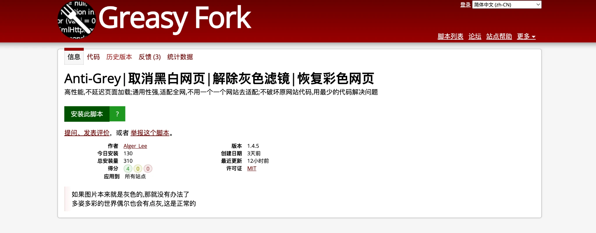 隔壁看的,油猴脚本:取消灰色