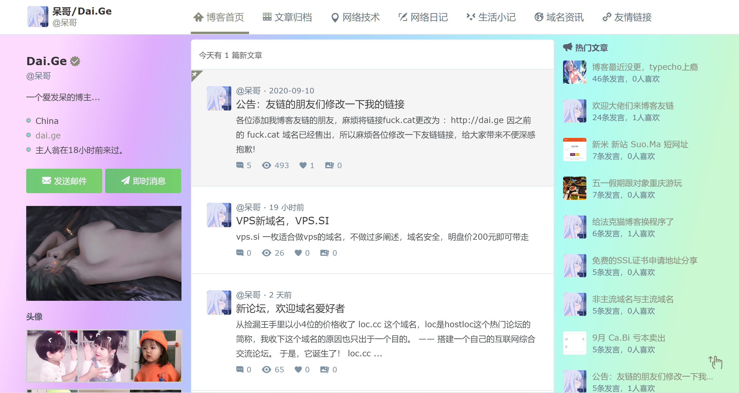 计划把呆哥博客(http://dai.ge)关了,内容融合到萌王(http://moe.mw)博客中去,moe.mw 域名在国外,最便宜也是460左右一年,dai.ge 腾出来做我的个人引导页。