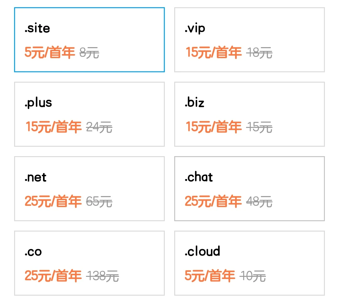 免费后缀: .top .wiki .xyz .中文网 .在线