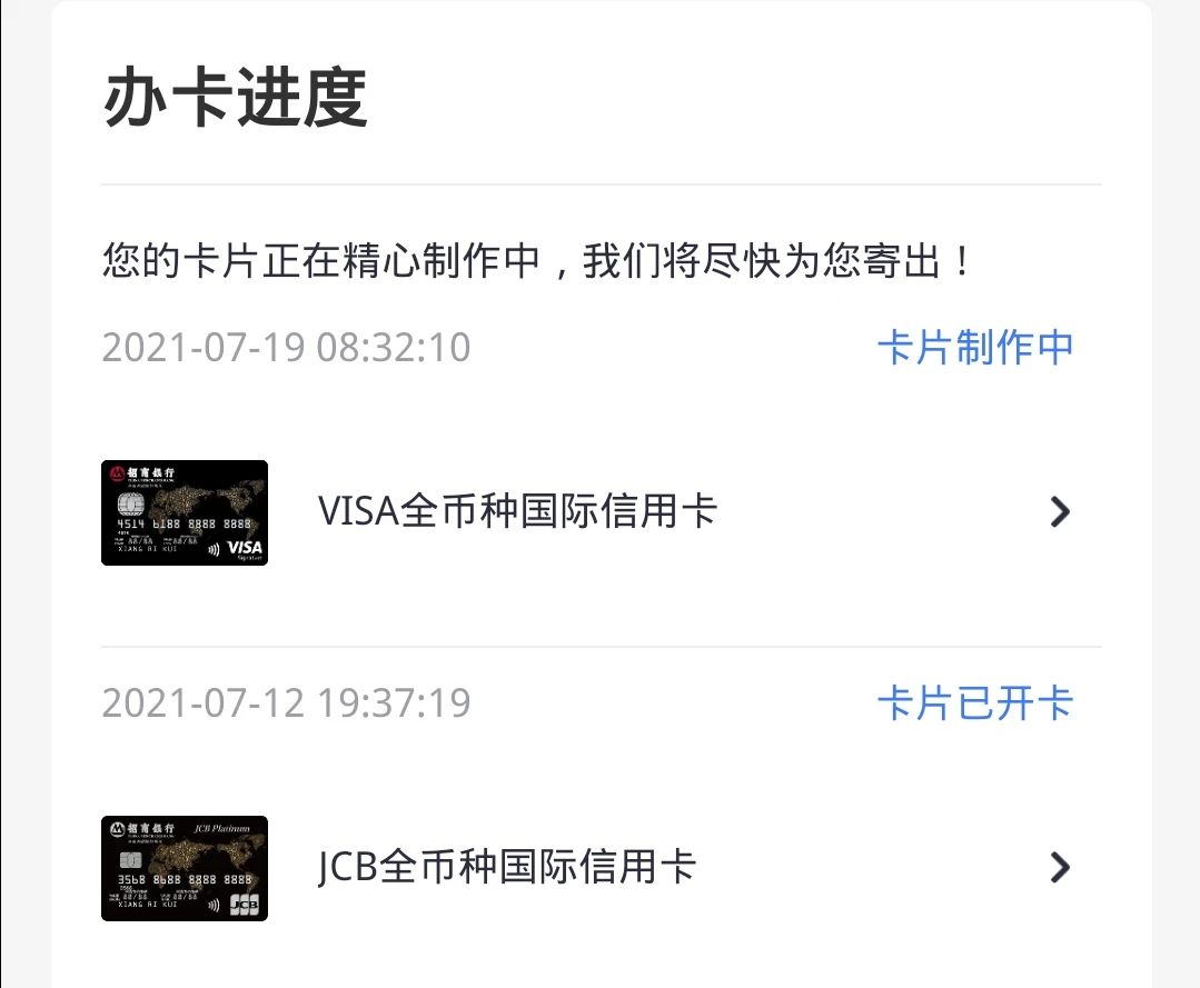 第一张没注意申请成了JCB的,外币付款时大多不支持这个,VISA比较通用,又重新申请一张