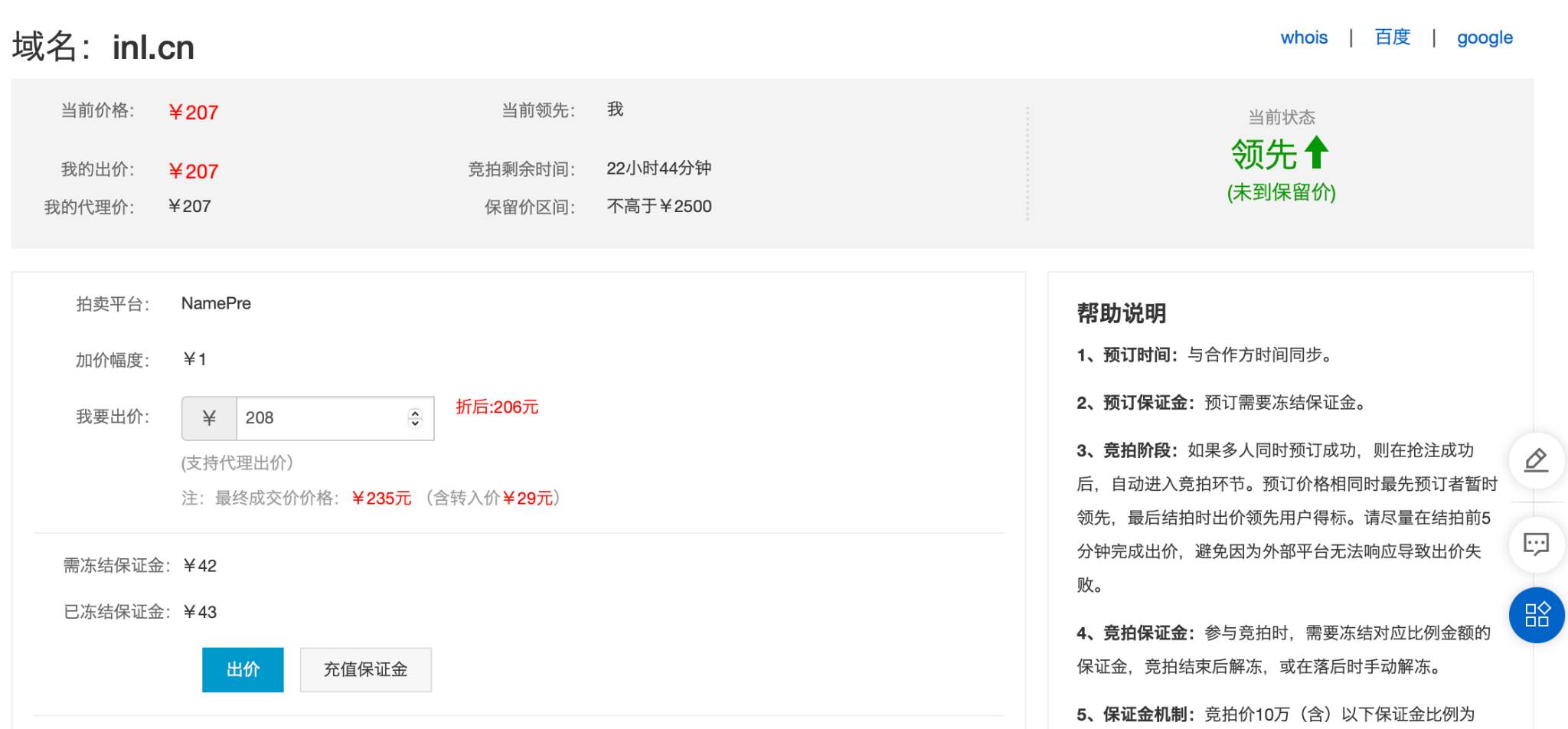 这个阿里过期抢注竞价规则是什么,未到保留价格到底什么意思,我怎么知道它的价格底线是多少