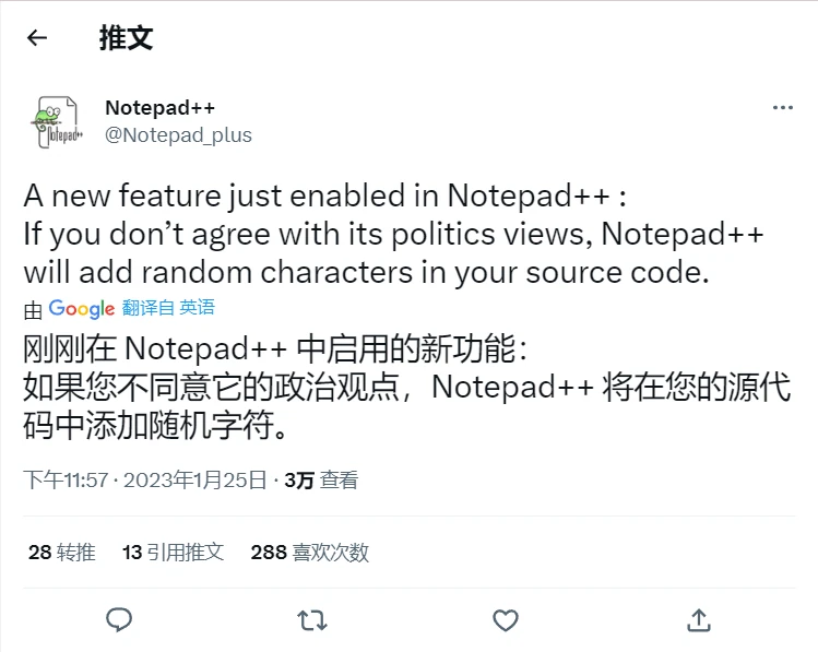 Notepad++作者又搞事情:不同意我的政治观点我就添加随机字符