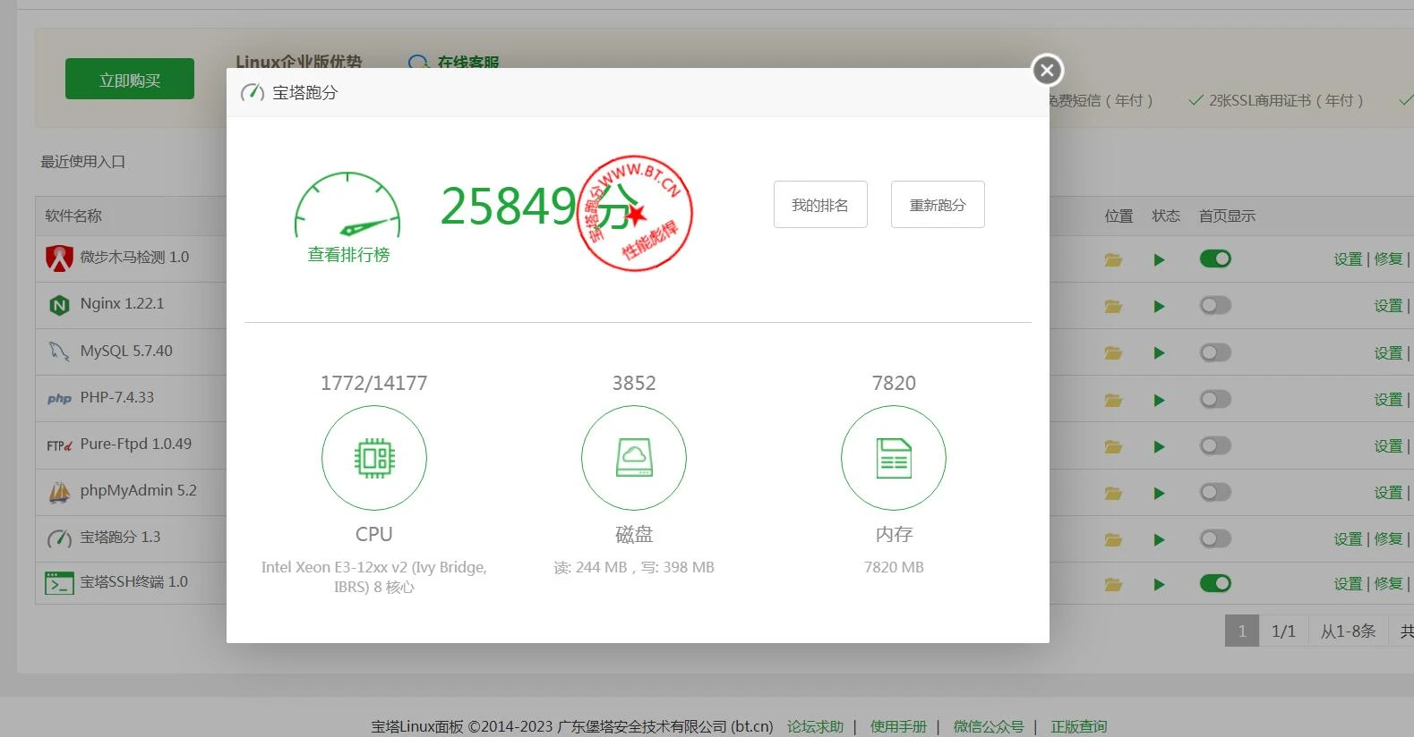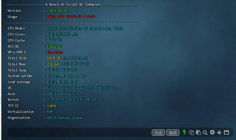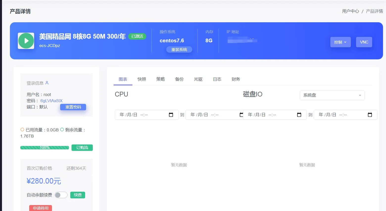 昨天看到广告 没忍住 入手了8核8G 50M 280/年 1台,