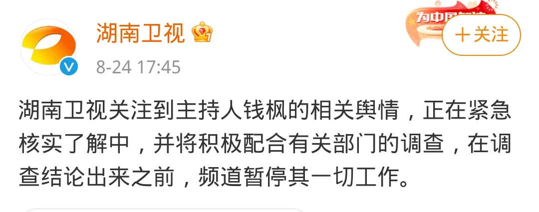 8月24日,网友爆料湖南卫视主持人 钱枫 强奸既遂。
