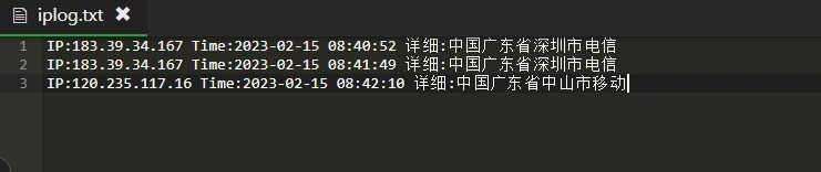 $content = "\r\n"."IP:".$ip." Time:".$time." 详细:".$ipdz;