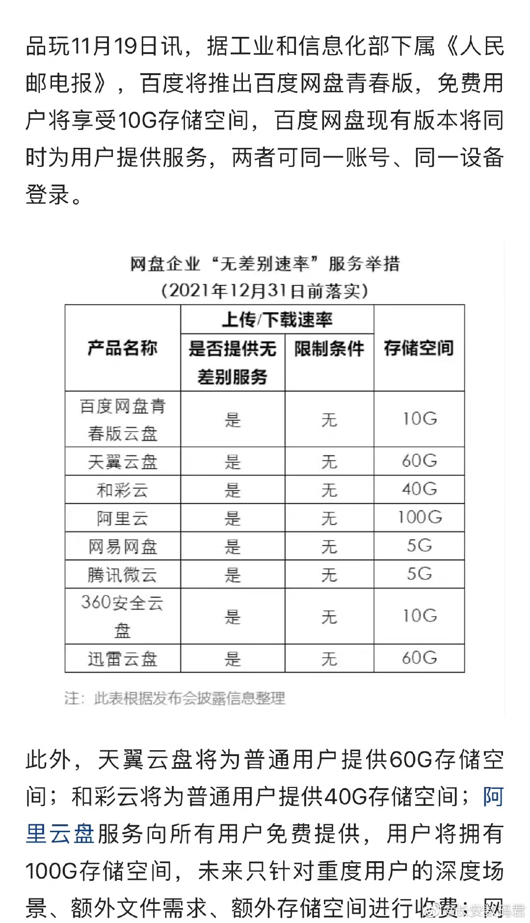 响应国家无差别下载速率号召,百度网盘将推出青春版:不限下载速度,10GB存储空间。