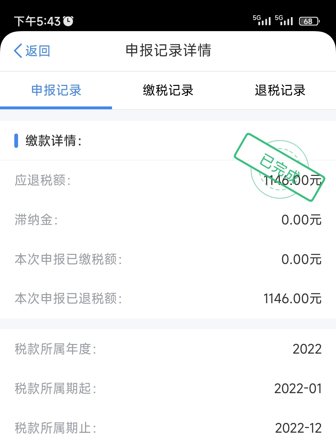 第一次退税记录下