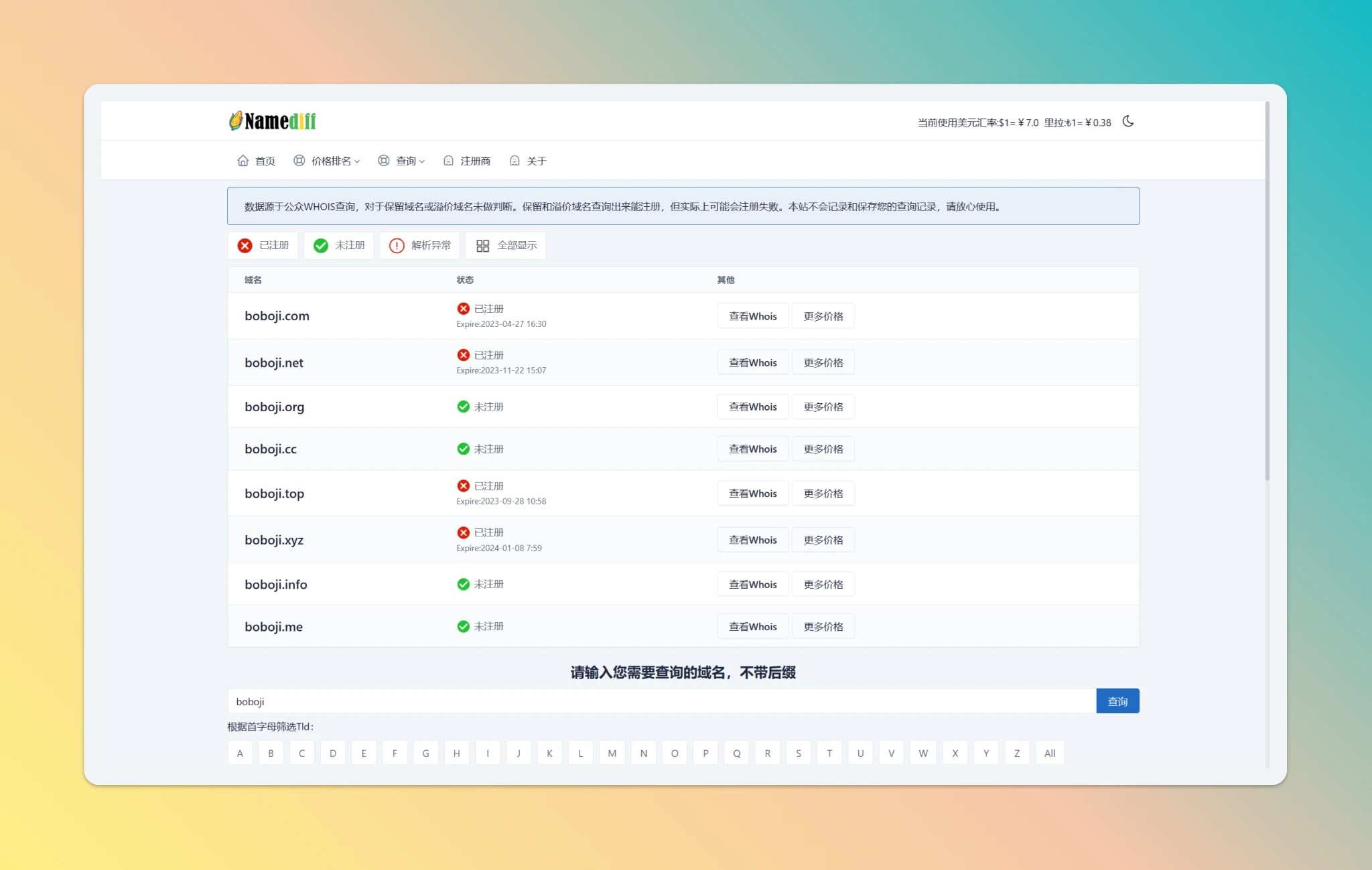NameDiff新增域名Tld批量查询,欢迎试用反馈